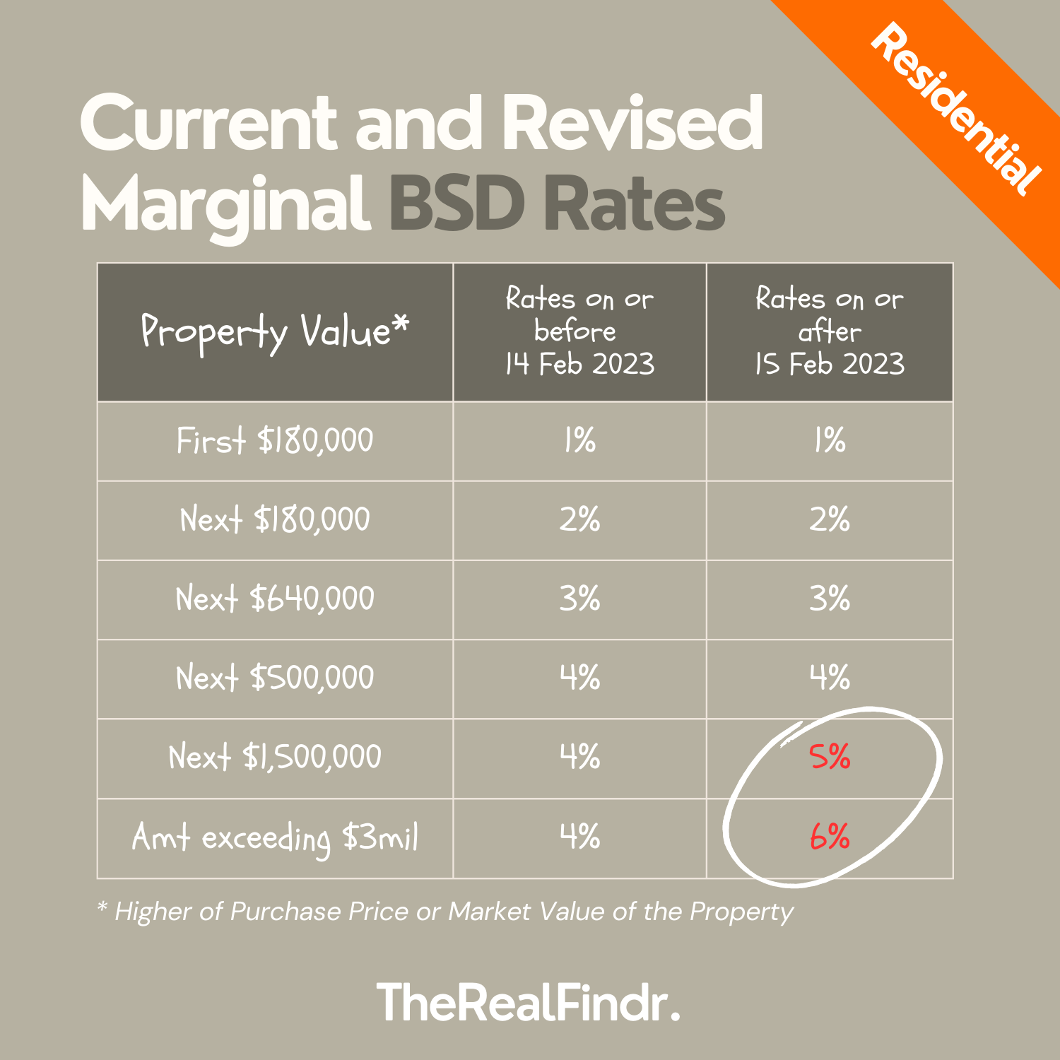 The Government announced on 14th February 2023 that the top marginal Buyer's Stamp Duty (BSD) rate for residential and non-residential properties will be raised to enhance the progressivity of the BSD regime.